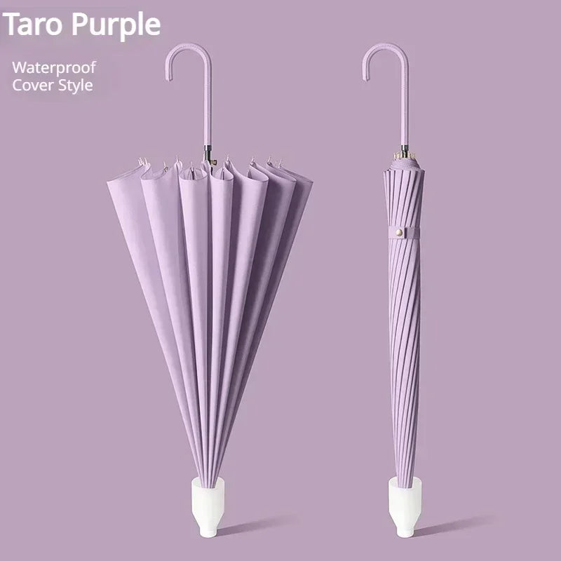 16 Bone Small Umbrella Long Straight Handle Umbrella PVC Waterproof Umbrella Upgraded Windproof Umbrella Outdoor Large Umbrella