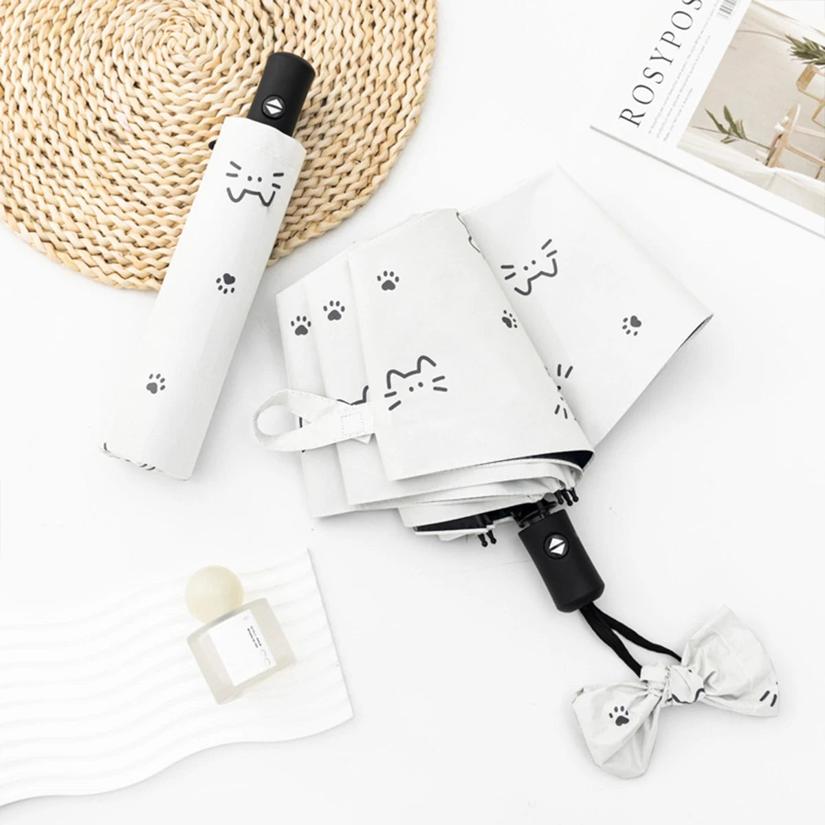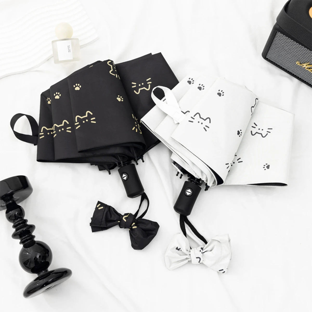 Portable automatic folding umbrella, home creative cat umbrella, cute cartoon anti UV automatic rain umbrella