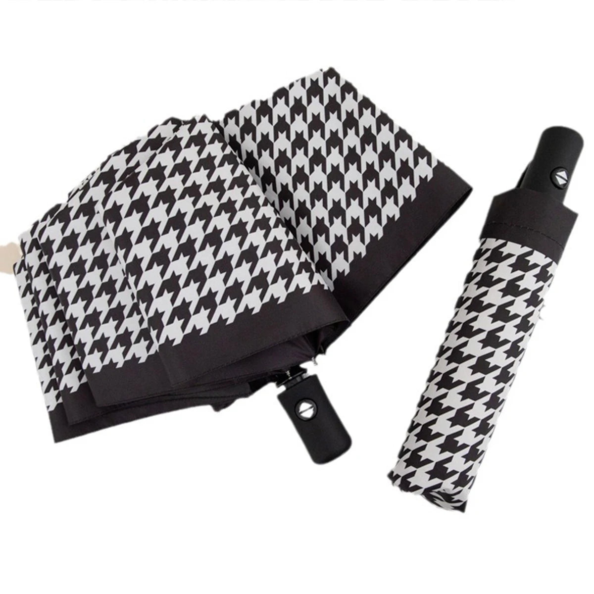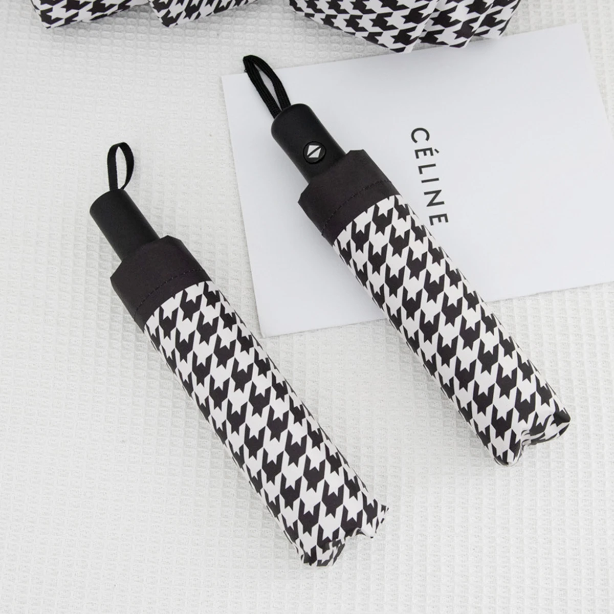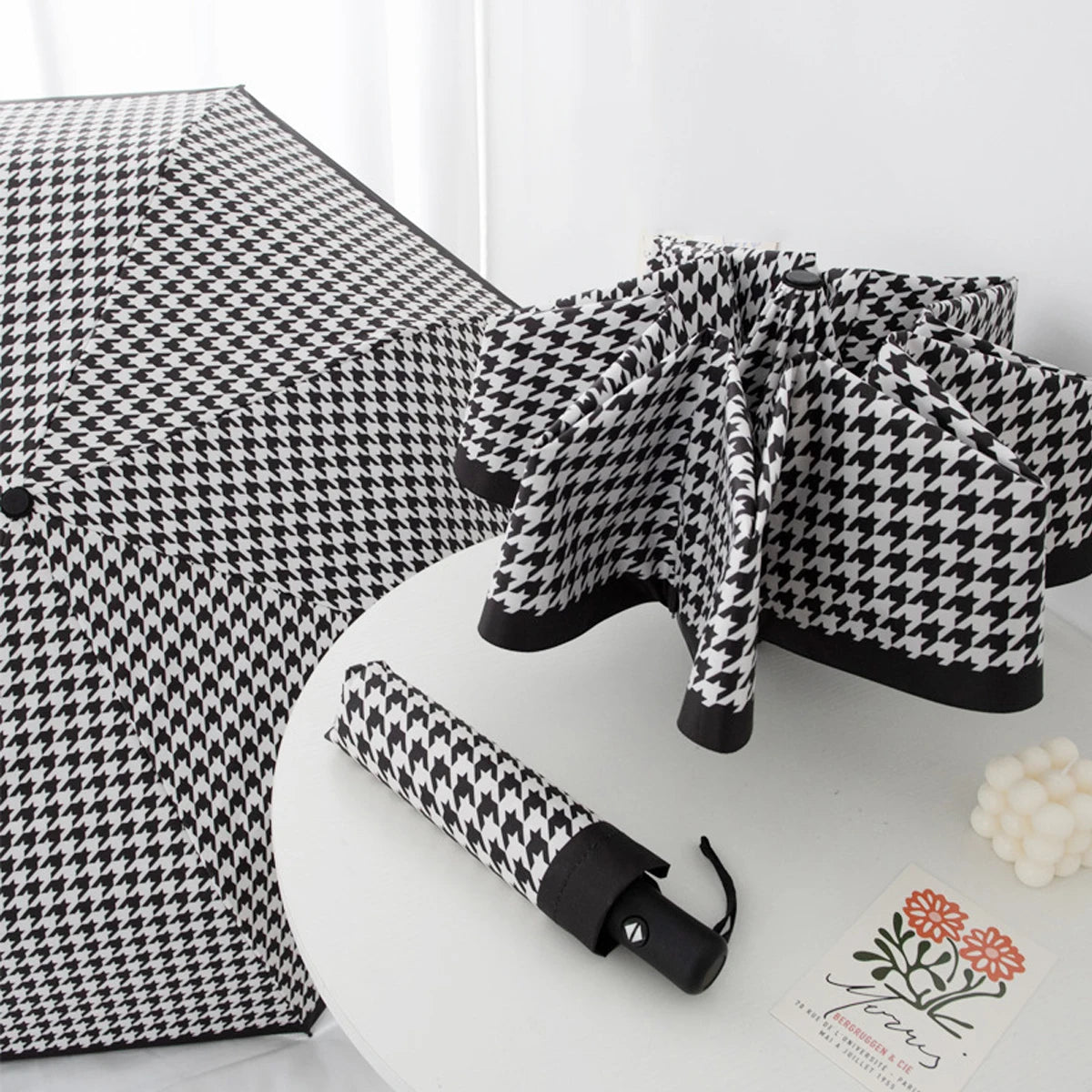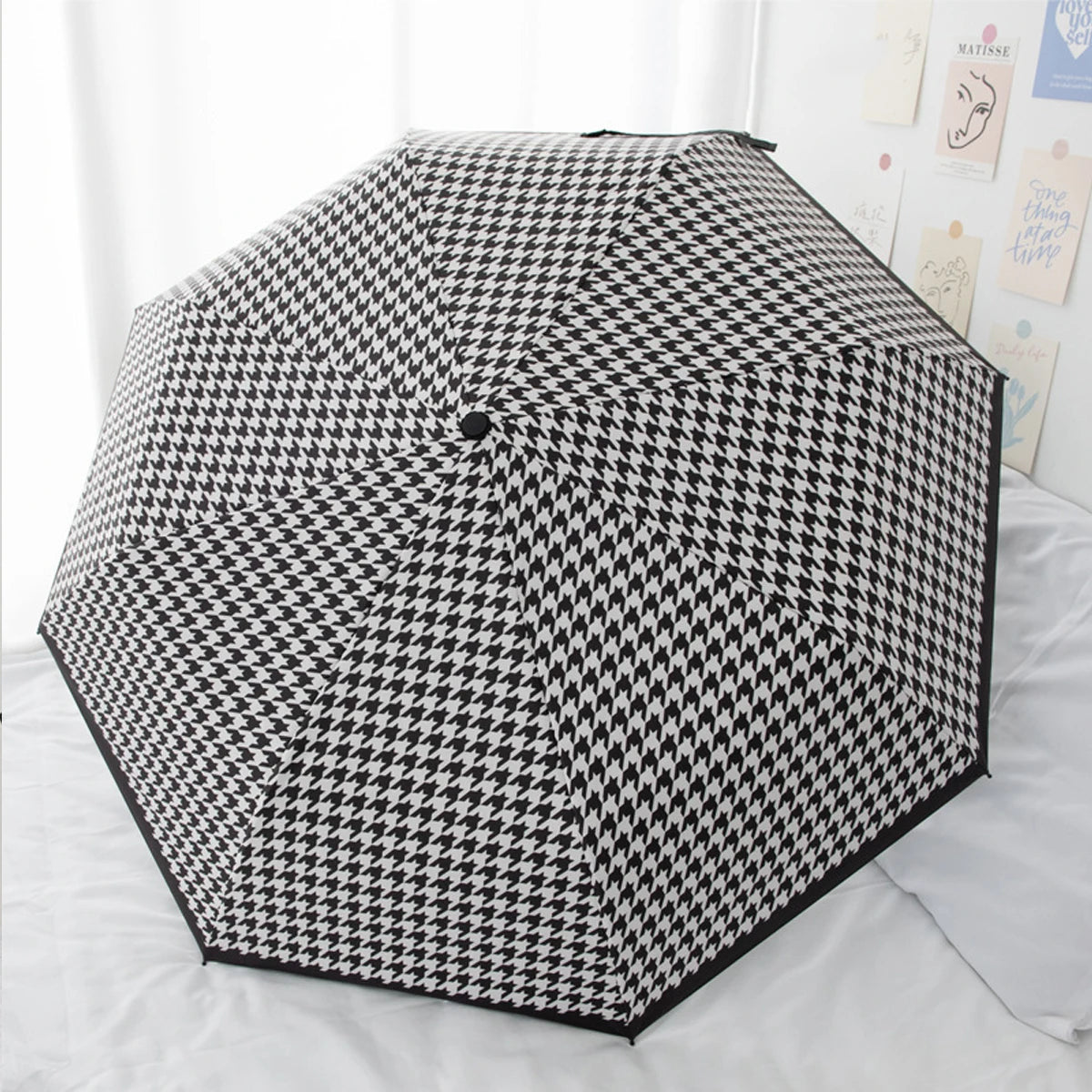 Umbrella high-end abstinence style black and white border Thousand Bird Grid Sunscreen Folding Umbrella for both rain and sunshi