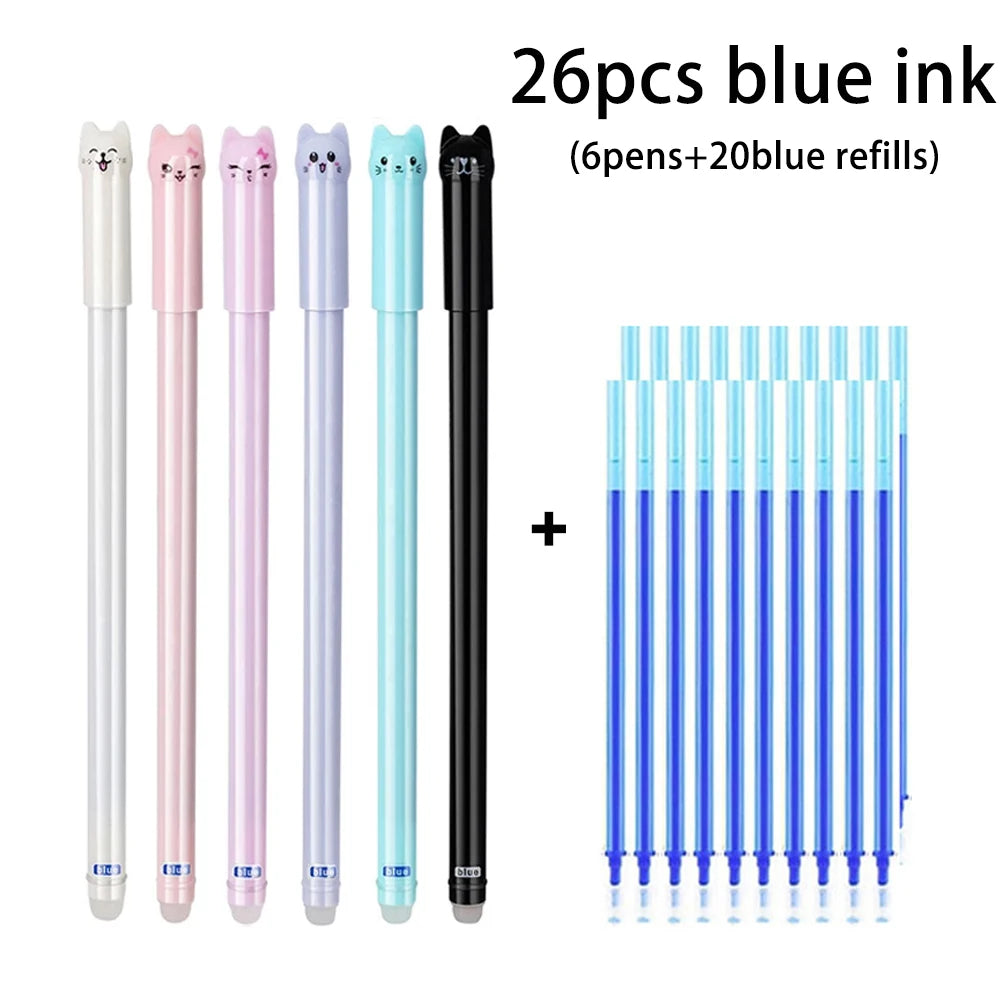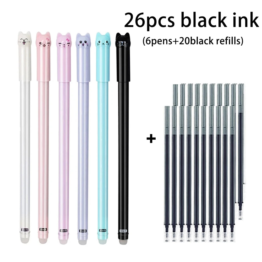 26Pcs/Set New Creative Cat Erasable Gel Pens Set 0.5mm Blue/Black Refills Rod Washable Handle School Office Writing Stationery