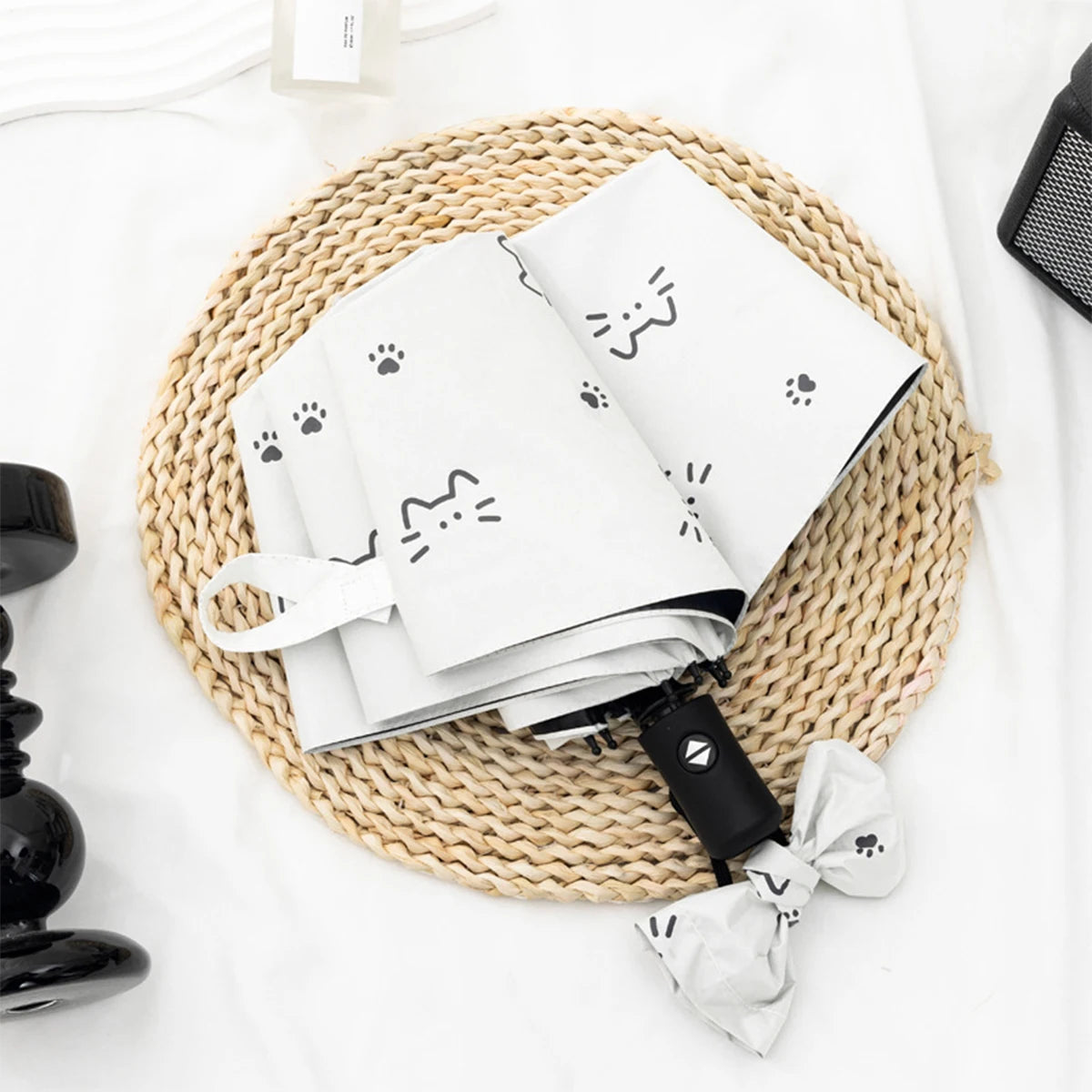 Portable automatic folding umbrella, home creative cat umbrella, cute cartoon anti UV automatic rain umbrella