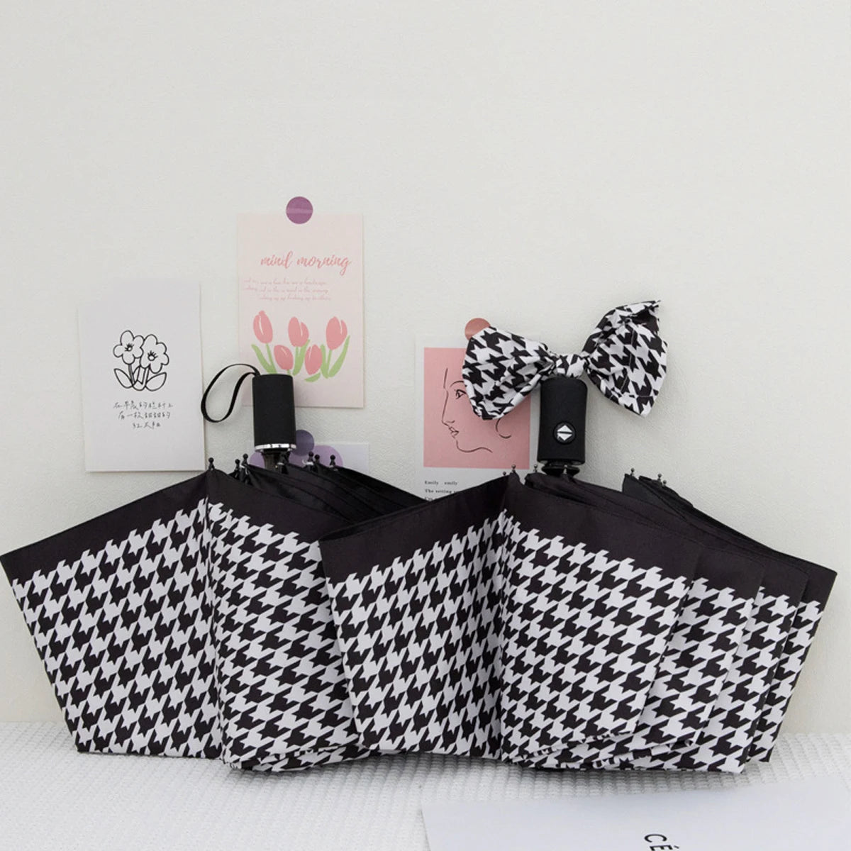 Umbrella high-end abstinence style black and white border Thousand Bird Grid Sunscreen Folding Umbrella for both rain and sunshi